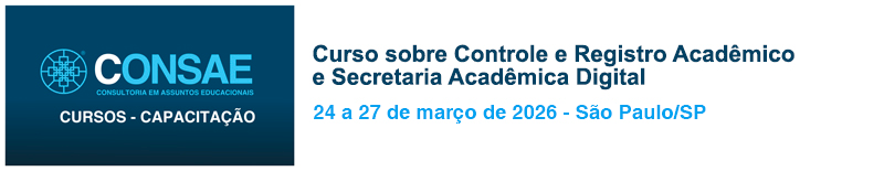 Preparado pela Equipe da CONSAE, sob coordenação dos Professores Abigail França Ribeiro e Tiago Muriel, o Curso sobre Controle e Registro Acadêmico e Secretaria Acadêmica Digital apresenta um programa abrangente e bastante prático para profissionais que têm a importante missão de cuidar do registro acadêmico e da estrutura tecnológica das IES, e para a qual precisam estar bem qualificados.
