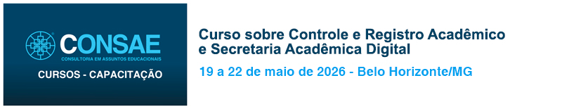Preparado pela Equipe da CONSAE, sob coordenação dos Professores Abigail França Ribeiro e Tiago Muriel, o Curso sobre Controle e Registro Acadêmico e Secretaria Acadêmica Digital apresenta um programa abrangente e bastante prático para profissionais que têm a importante missão de cuidar do registro acadêmico e da estrutura tecnológica das IES, e para a qual precisam estar bem qualificados.