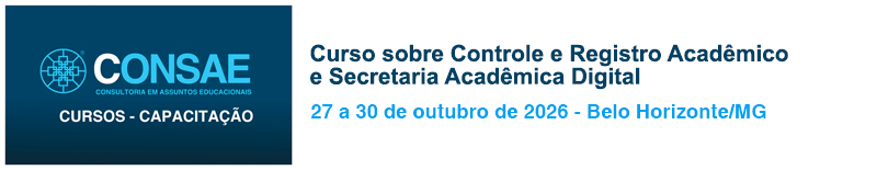 A CONSAE – Consultoria em Assuntos Educacionais realizará, em Belo Horizonte/MG, no Hotel Mercure Belo Horizonte Lourdes, nos dias 27 a 30 de outubro de 2026, o Curso sobre Controle e Registro Acadêmico e Secretaria Acadêmica Digital.